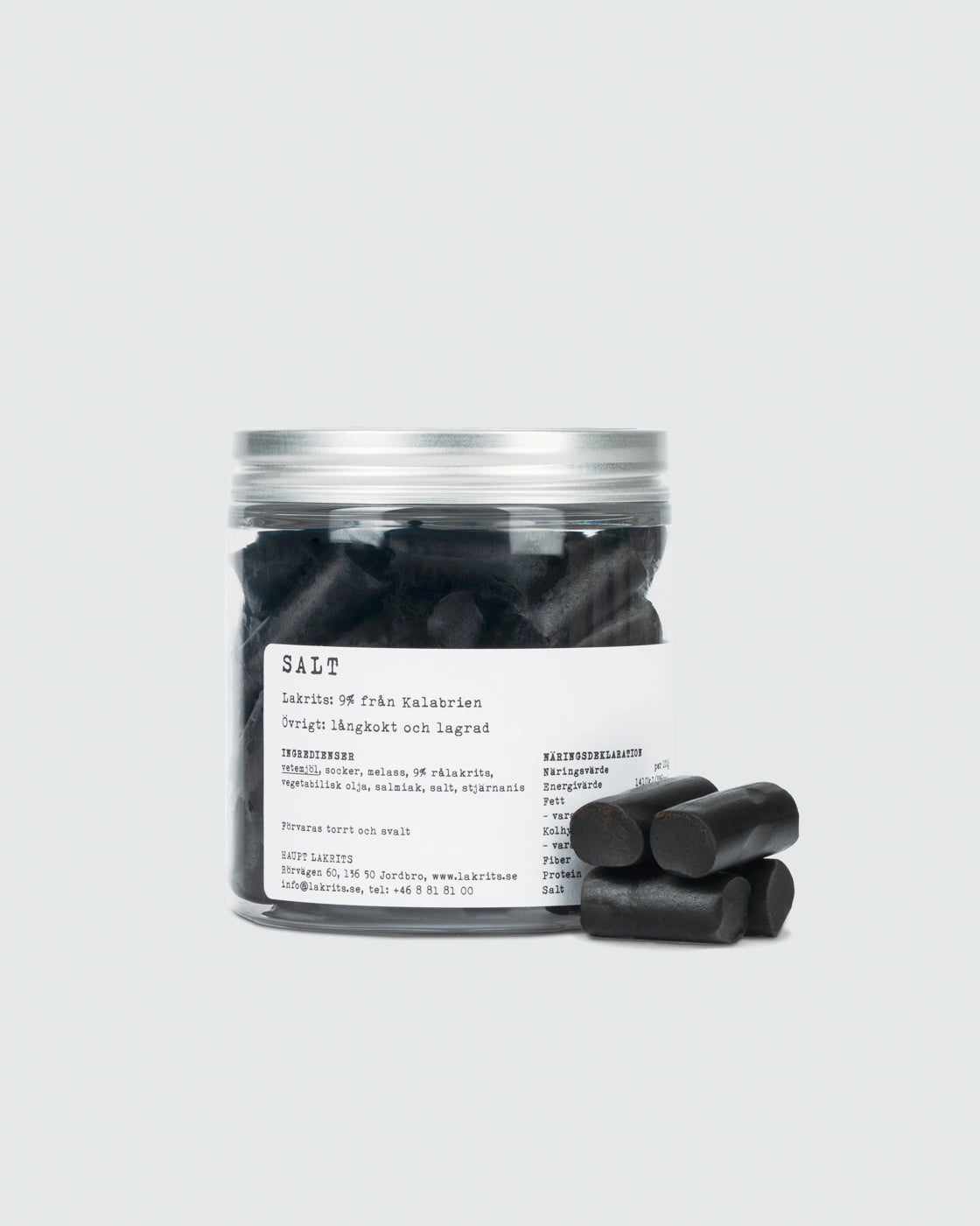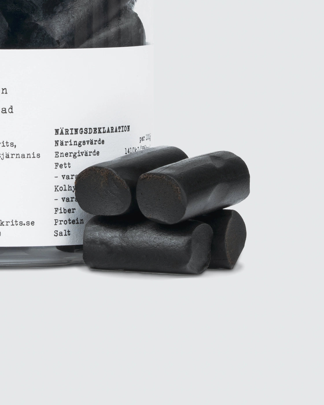 Lakritsstubbe med mild sälta och hela 9 % rålakrits från Kalabrien – djup, intensiv och elegant i varje tugga.